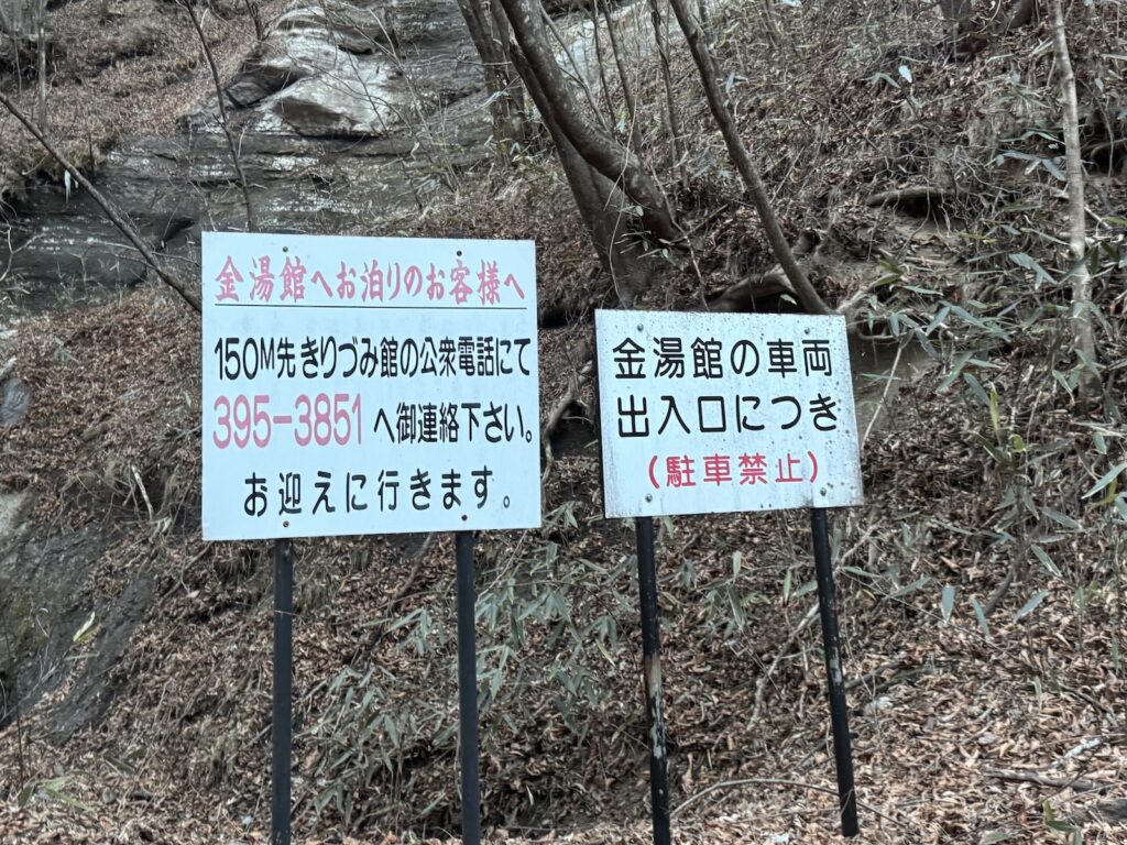 金湯館専用私道に入ってからは、道の状態は決して良くなく、運転の難度は非常に高い印象だった