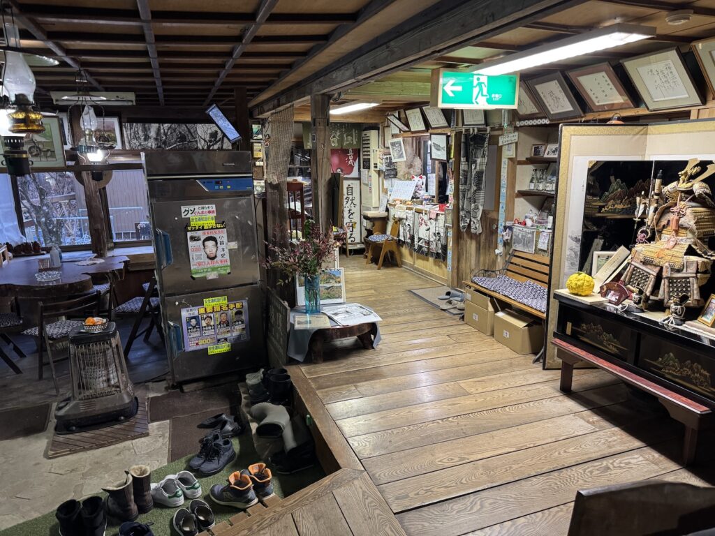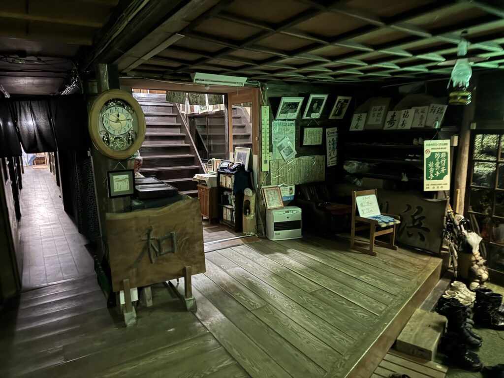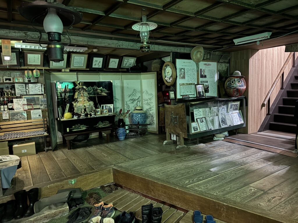 お宿の中に入ると、兜やお土産、サイン色紙、宿の歴史に関する様々な資料などが所狭しと飾られており、非常にアットホームな空間となっています。開業当時は明治ということで、当時の人々の背丈に合わせて建てられたため、天井は低く、背の高い方は廊下を歩く際に頭を前屈して歩かれることもあるようです。
