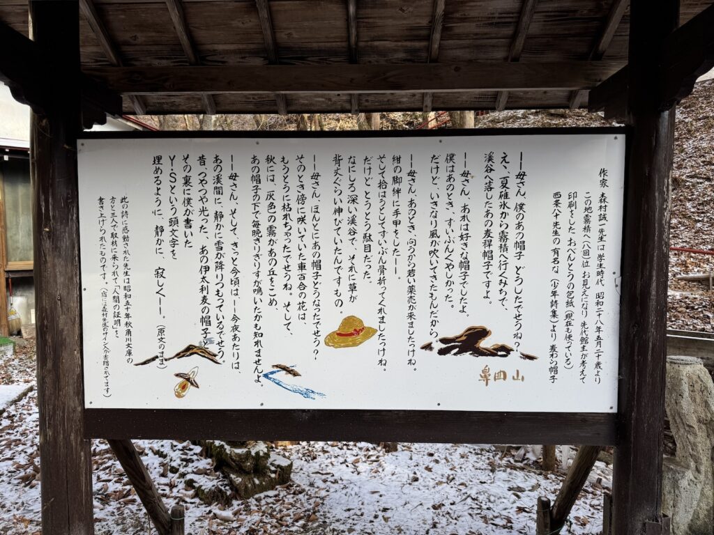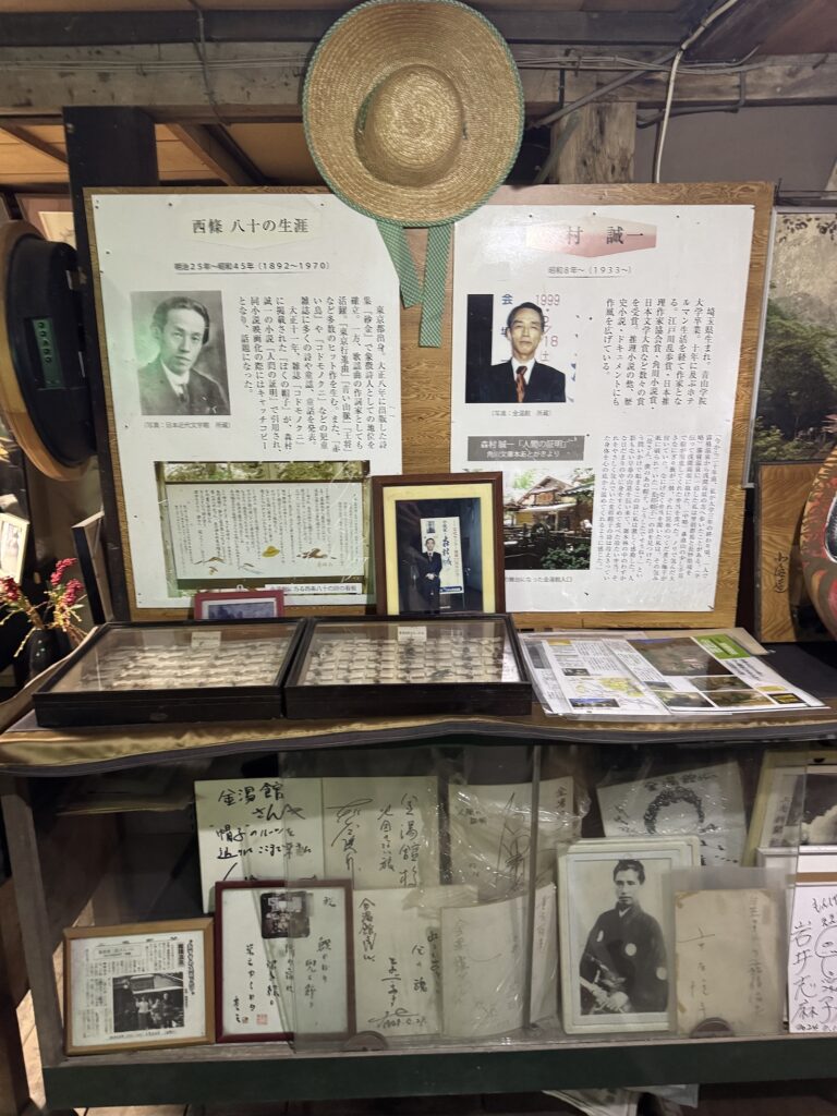 金湯館の母屋周辺には、この地を訪れた文化人らの作品等にちなんだ掲示がなされています。