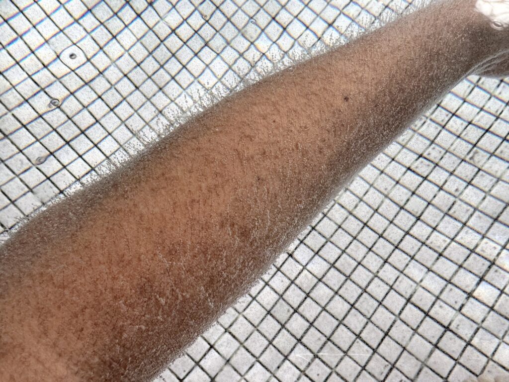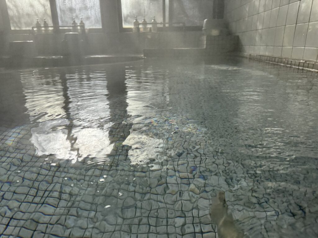 お湯に浸かると、このように、細かい泡が身体中にまとわりつく。浴後はツルツルすべすべの浴感だった