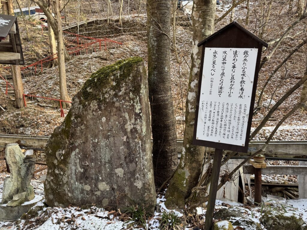 勝海舟の揮毫による碑。矢島揖子(YWCA、キリスト教婦人矯風会創立者で徳富蘇峰・蘆花の伯母にあたる)の依頼により、そのとき皮膚病で湯治に来ていた勝海舟が筆をとったものと言われている