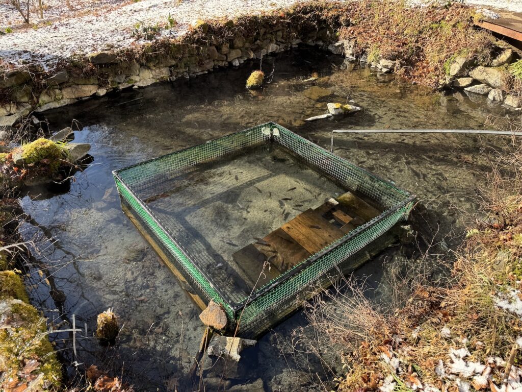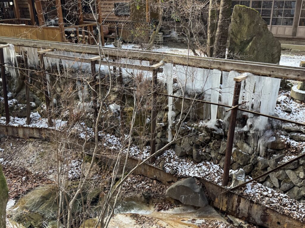 宿の周りを囲む全長30メートルの水路にできた“つらら”が印象的