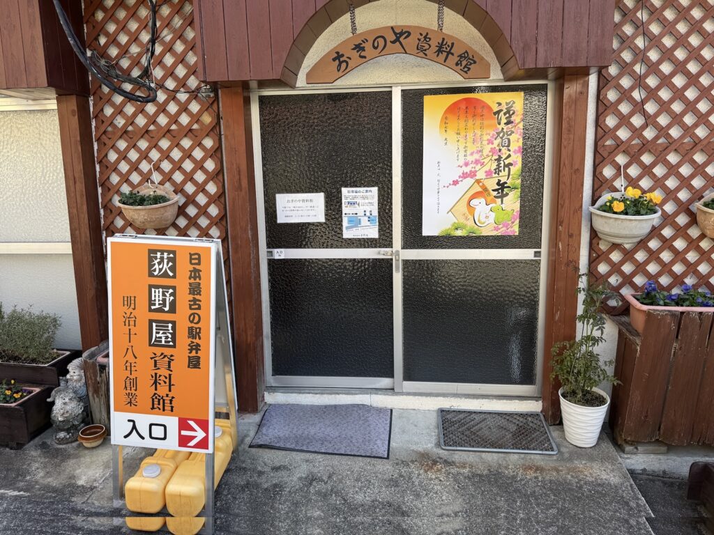 店舗の向かいに設置された「おぎのや資料館」。この日は元旦等ことであいにくの閉館だったが、中ではおぎのやや鉄道の歴史を学べる。入館は無料