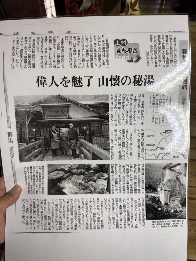 今回は年末年始(12/31と1/1)にお世話になった金湯館。電波が十分に入らないということで、強制的なデジタルデトックスの時間となり、ゆっくりと温泉に浸かって自然を堪能する時間となりました。
